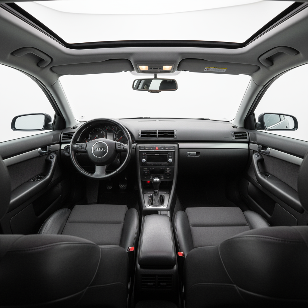 El diseño del Audi A4 B6 es una obra maestra de proporciones y pureza de líneas. Es un coche que envejece con una dignidad excepcional, luciendo tan relevante hoy como el día que salió del concesionario. El paquete S Line acentúa su carácter atlético sin romper su elegancia innata, con paragolpes más agresivos y unas llantas de 17 pulgadas que llenan perfectamente los pasos de rueda. Por dentro, te recibe un santuario de calidad. Materiales nobles, ajustes milimétricos y una ergonomía perfecta crean una atmósfera donde cada viaje se convierte en un placer.