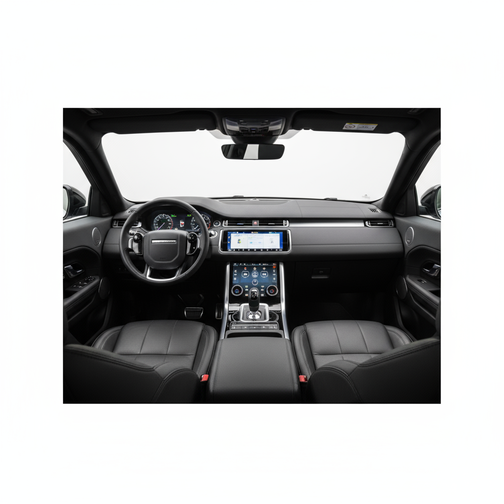 Más allá de su belleza, el Evoque D150 esconde tecnología inteligente. El sistema de hibridación ligera de 48V no solo le otorga la etiqueta ECO, sino que asiste al motor para mejorar la eficiencia y la suavidad en el arranque. Su sistema de tracción total AWD es heredero directo de la legendaria capacidad de Land Rover, adaptándose al terreno de forma automática. En el interior, el protagonismo recae en el sistema de doble pantalla Touch Pro Duo, que centraliza el control del vehículo en una interfaz futurista y elegante.