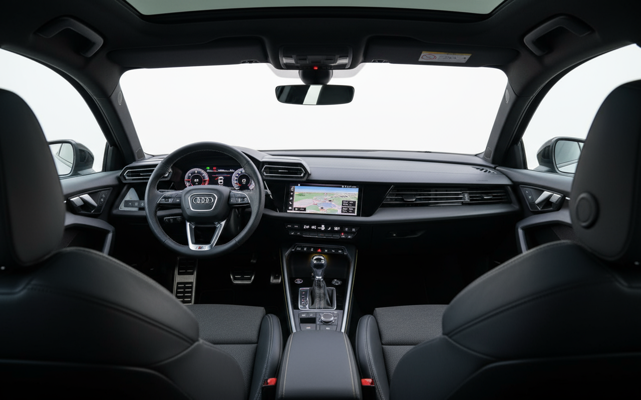 Dentro del Audi A3, la tecnología te envuelve en una atmósfera futurista y funcional. El puesto de conducción está orientado hacia el conductor, con pantallas digitales de alta resolución que presentan la información de forma clara e intuitiva. La calidad de los materiales y el ajuste de cada componente transmiten una sensación de solidez premium inigualable. Bajo el capó, el motor TDI es un prodigio de la ingeniería, optimizado para ofrecer un consumo mínimo de 4.7 l/100km sin sacrificar la respuesta, demostrando que la eficiencia y la emoción pueden ir de la mano.