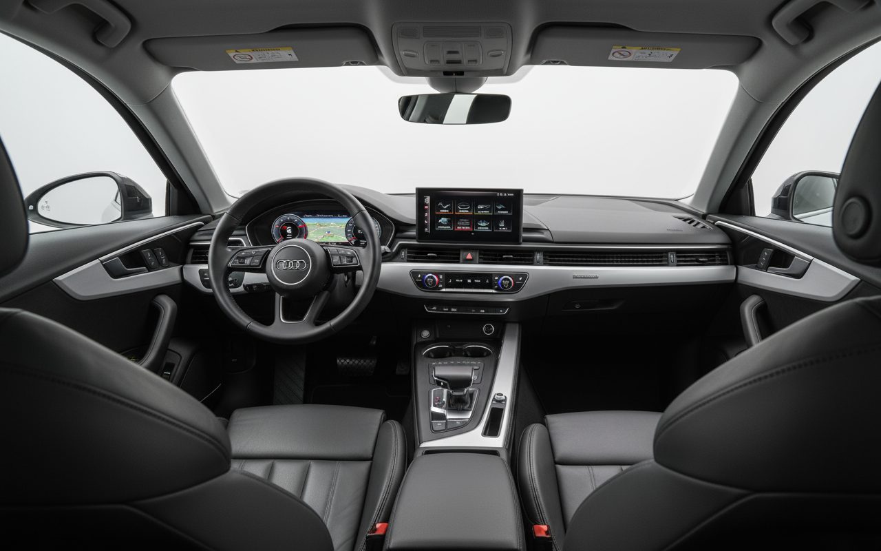 El diseño del A4 es una declaración de intenciones: atemporal, afilado y profundamente elegante. Las líneas tensas recorren la carrocería, mientras que la parrilla Singleframe y los detalles del paquete S line le confieren un carácter musculoso y distinguido. Los neumáticos de 18 pulgadas llenan los pasos de rueda, anclando el coche visualmente al asfalto. Por dentro, te recibe un santuario de calidad. Los materiales son exquisitos al tacto y a la vista, y el ensamblaje es simplemente perfecto. Es un espacio minimalista y tecnológico, diseñado para que el conductor se sienta el centro del universo, en un ambiente que inspira calma y dominio.