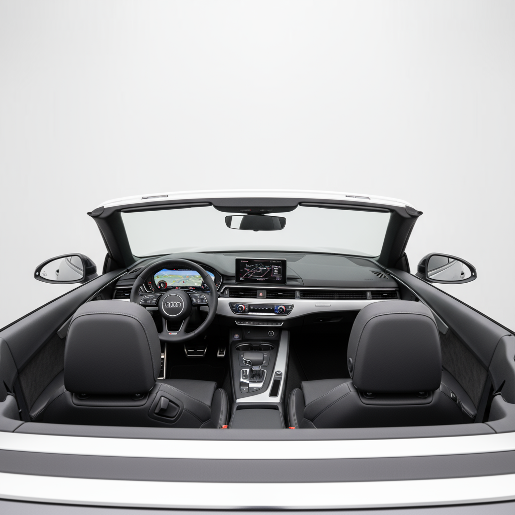 El diseño del Audi A5 Cabrio es una declaración de elegancia y deportividad. Sus líneas fluidas y afiladas recorren una carrocería de proporciones perfectas, culminando en una zaga musculosa y distintiva. La capota de lona clásica, cuando está cerrada, mantiene una silueta de coupé impecable, y se pliega con rapidez para dar paso a la esencia descapotable del vehículo. Por dentro, el habitáculo es un santuario de calidad y buen gusto. Materiales nobles, ajustes milimétricos y un diseño limpio y ergonómico te envuelven en una atmósfera de lujo tecnológico. Cada interruptor, cada costura, cada superficie, todo transmite una sensación de solidez y refinamiento que define a la marca de los cuatro aros.