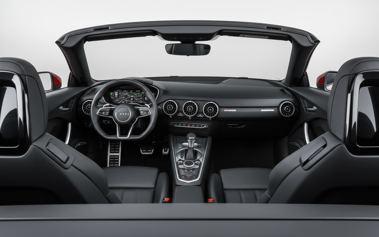 El diseño del Audi TT Roadster es una obra de arte en movimiento. Mantiene la silueta icónica y musculosa que lo hizo famoso, pero con la elegancia añadida de un descapotable clásico. Sus proporciones son perfectas: compacto, bajo y ancho, proyectando una imagen de deportividad y aplomo. En el interior, la filosofía es minimalista y centrada en el conductor. El Audi Virtual Cockpit elimina la pantalla central, integrando toda la información en el cuadro de instrumentos digital para una experiencia inmersiva y sin distracciones. La calidad de los materiales y el ajuste de cada componente transmiten una sensación de lujo y solidez que solo Audi sabe ofrecer.