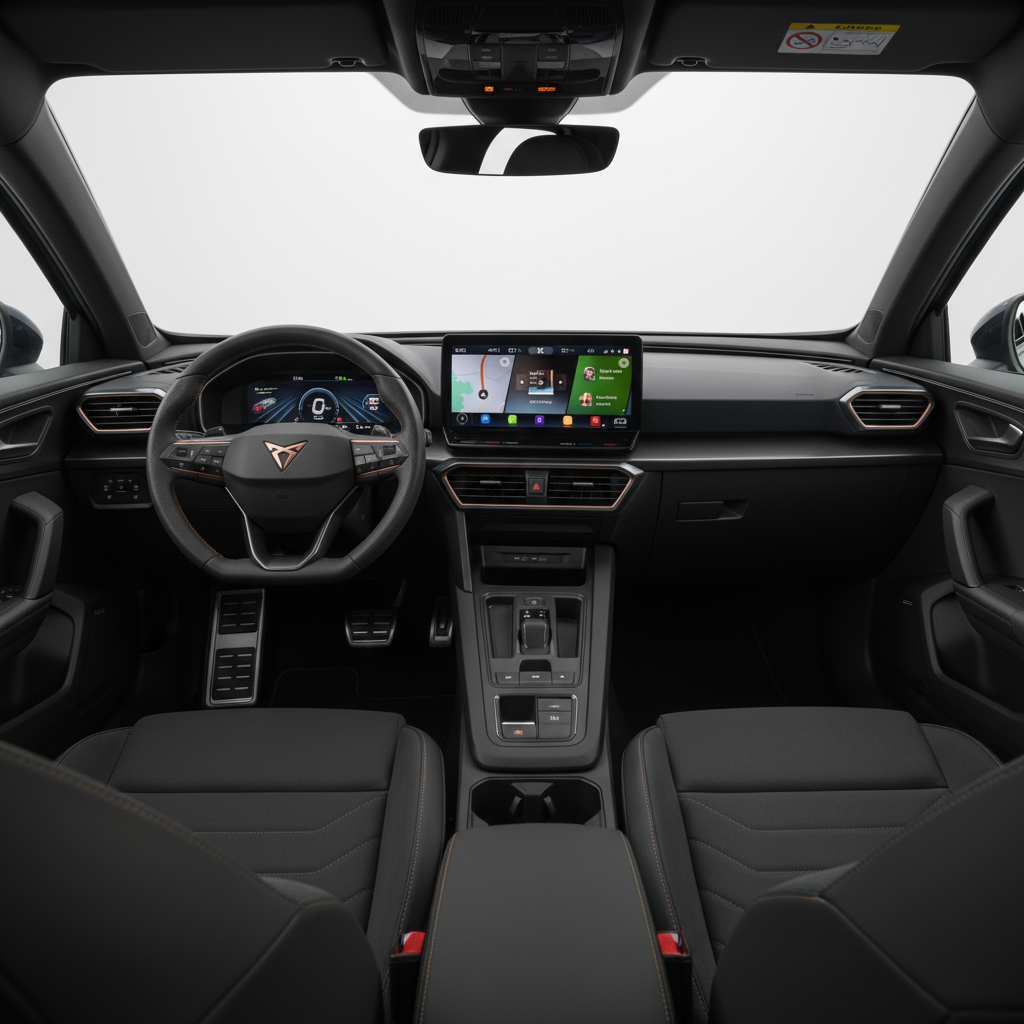 En el interior, el Formentor VZ es un escaparate tecnológico. Cuenta con un cuadro de instrumentos digital personalizable y una pantalla táctil central de gran tamaño que integra el sistema de infoentretenimiento. La conectividad es total, con Apple CarPlay y Android Auto, y los asistentes a la conducción de última generación garantizan la seguridad y el confort en cada viaje. La iluminación ambiental configurable y los asientos deportivos con tapicería de alta calidad completan un habitáculo donde la tecnología y el lujo se dan la mano.