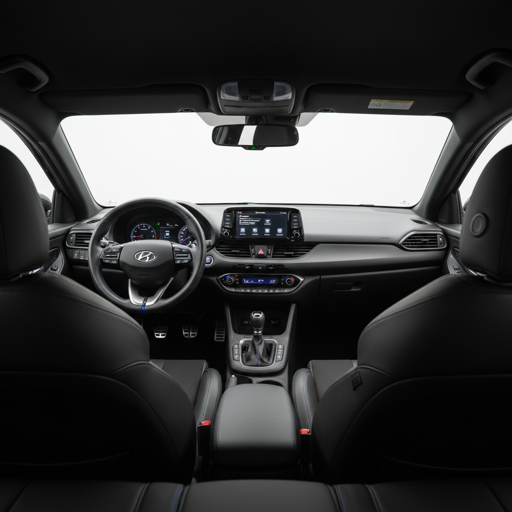 Visualmente, el i30 N es un atleta vestido para la acción. Partiendo de la base del i30, añade un kit de carrocería específico con parachoques más agresivos, detalles en rojo y un alerón trasero que no deja lugar a dudas sobre su naturaleza. Las llantas de 18 pulgadas y la doble salida de escape completan un conjunto musculoso y decidido. Por dentro, la atmósfera es igualmente deportiva, con unos asientos que te abrazan en las curvas, un volante con los botones de modos de conducción a mano y costuras en el característico color Performance Blue. Es un diseño funcional y pasional a partes iguales.