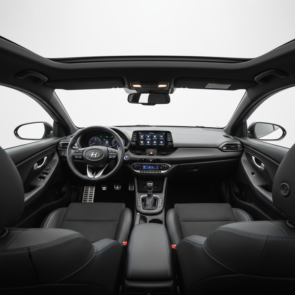 Su estética grita rendimiento por los cuatro costados. No es un i30 cualquiera; es una bestia agazapada. Los parachoques agresivos, el alerón trasero, la doble salida de escape y las imponentes llantas de 19 pulgadas no dejan lugar a dudas sobre su carácter. Por dentro, la atmósfera deportiva continúa con unos asientos que te abrazan en las curvas y un volante con los botones de modo de conducción al alcance de tus pulgares. Es un diseño funcional y emocionante, centrado en el piloto.