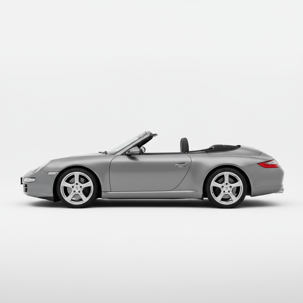 El diseño del Porsche 911 Carrera 4 Cabriolet de 2005 es atemporal y elegante. Sus líneas fluidas y su silueta inconfundible lo convierten en un icono. La capota de lona se integra perfectamente en el conjunto, y al descapotarlo, revela un interior refinado y deportivo. Las dimensiones compactas, con 4427 mm de largo y 1852 mm de ancho, le otorgan una agilidad visual que se traduce en su comportamiento dinámico. Los detalles como las llantas de 18 pulgadas, con neumáticos de diferente medida en cada eje (235/40 R18 Z delante y 295/35 R18 Z detrás), realzan su carácter deportivo y su presencia imponente en la carretera.