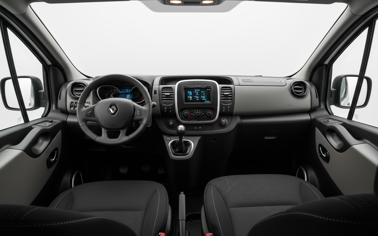 En el apartado tecnológico, el Renault Trafic de 2014 incorpora elementos esenciales para la comodidad y la eficiencia. El motor 1.6 dCi Twin Turbo es una muestra de ingeniería avanzada, combinando potencia y un consumo contenido. La inyección directa por conducto común, el turbo de geometría variable y el intercooler optimizan el rendimiento. Cuenta con sistema Stop&Start para mejorar la eficiencia en ciudad y una transmisión manual de 6 velocidades que permite un control preciso. Aunque no es un vehículo cargado de las últimas innovaciones en infoentretenimiento, cumple con lo necesario para un viaje agradable y seguro.