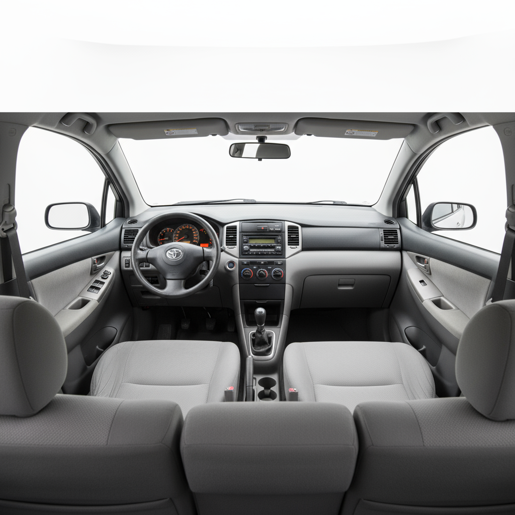 El diseño del Toyota Corolla Verso de 2004 es funcional y atemporal. Sus líneas son limpias y fluidas, sin estridencias, lo que le confiere una elegancia discreta. La versión Sport añade un toque más dinámico con detalles específicos, aunque mantiene la esencia práctica del modelo. El frontal es robusto, con faros que se integran armoniosamente en la carrocería. La vista lateral revela una silueta de monovolumen compacta pero espaciosa, con una buena superficie acristalada que favorece la luminosidad interior. La parte trasera es sencilla y funcional, con un portón de generosas dimensiones que facilita la carga. En el interior, el diseño es ergonómico y los materiales, aunque no lujosos, son de buena calidad y están bien ajustados, transmitiendo una sensación de durabilidad.